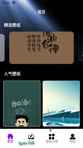 打开软件首页后,点击底部的壁纸分类选项,即可进入壁纸分类页面。