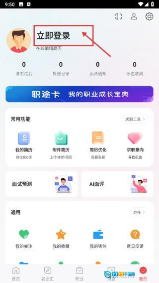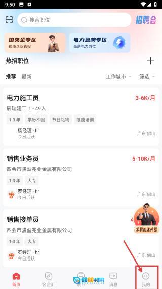 进入招聘分类后,点击页面底部的“我的”按钮,即可进入个人中心界面。