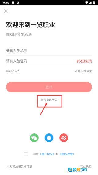 在登录选择界面,点击账号密码登录选项,进入账号密码登录页面。