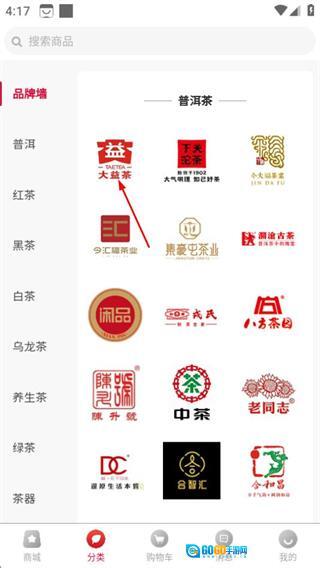 在分类页面挑选品牌,比如大益茶,随后进入商品列表页面。