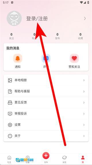 在我的页面,点击登录注册。