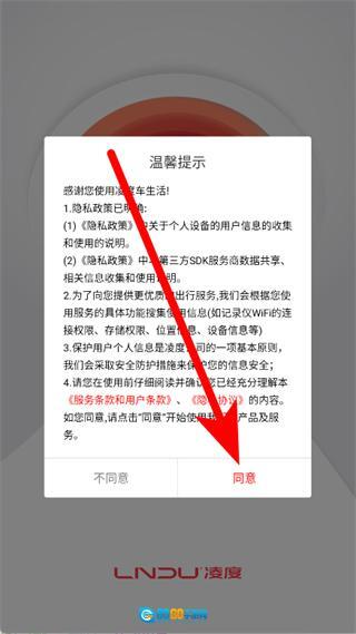 打开凌度车生活,在弹窗中点击同意。