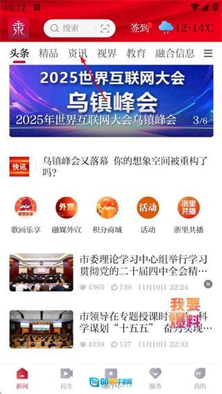 在歌画东阳的首页,点击顶部的资讯选项,就能进入资讯页面。