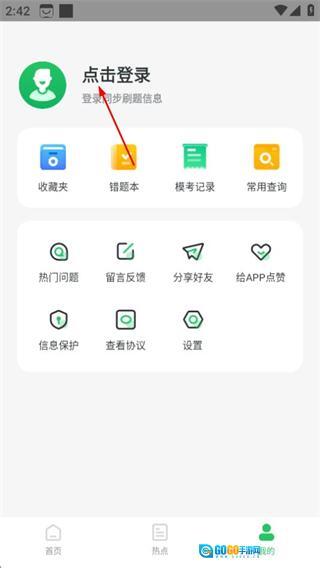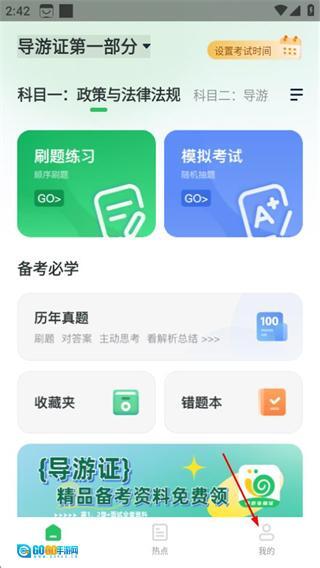 在导游证小牛题库的首页,点击右下角的“我的”选项,就能进入个人页面了。