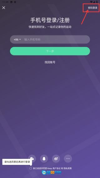 在登录方式选择界面,点击密码登录选项,即可切换至密码登录页面。