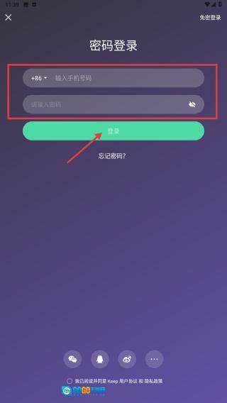 在密码登录界面,填写手机号码与密码后,点击登录按键,即可完成账号登录流程。