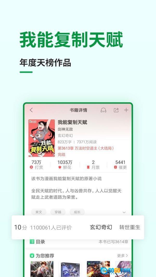 txt/epub/umd/pdf等多种格式全面兼容;飞卢小说书架支持云端同步,多终端可自由切换;图书支持在线缓存,离线阅读节省流量;智能图书推荐功能,轻松解决书荒问题;界面简洁操作流畅,让阅读回归简单本质。