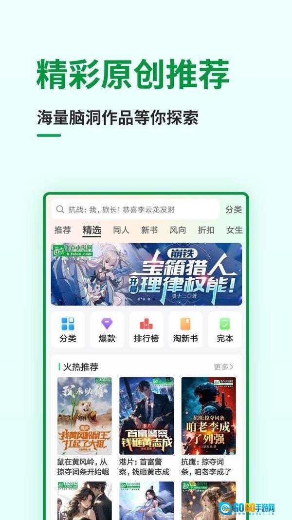 玄幻奇幻、武侠仙侠、都市言情、竞技游戏、科幻灵异、青春校园、穿越宫廷、历史军事,只有你想不到的,没有你读不到的。