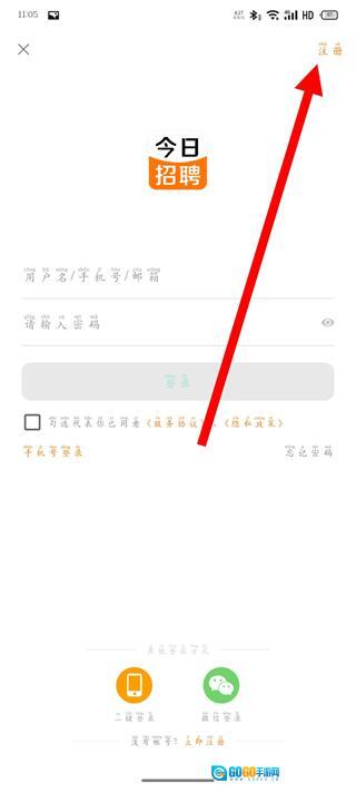 进入登录页面后,点击右上角的注册按钮,即可进入注册页面。