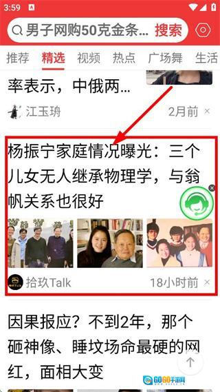 最后我们可以在资讯详情页面,查看关于杨振宁子女等相关内容。