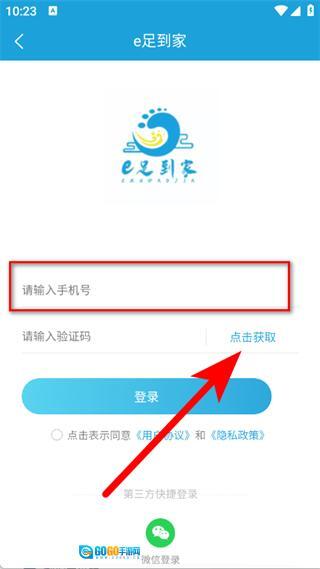 在登录页面,输入手机号码,点击获取验证码。