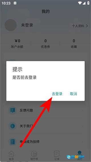 在提示弹窗中,点击去登录,进入登录页面。