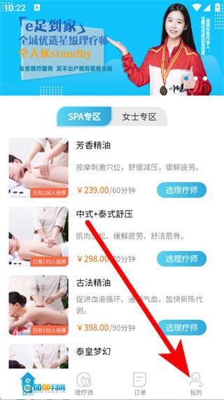 打开E足到家,点击底部我的,进入个人页面。