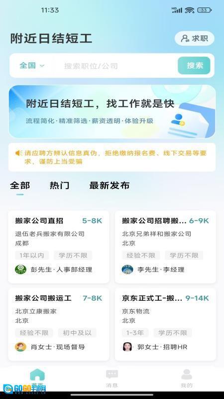 实时推送最新发布的职位信息,为用户提供更多更新的求职资源,助力用户高效找工作。