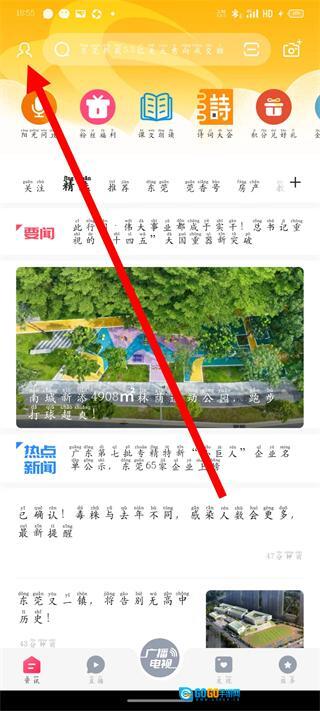 打开知东莞应用,找到页面左上角的头像图标并点击,即可进入个人中心界面。