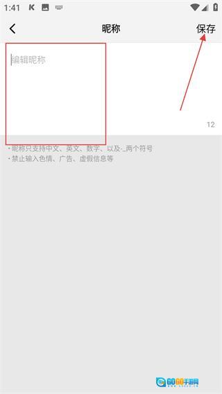 进入昵称编辑页面后,输入新的昵称,接着点击保存按钮,即可完成昵称的修改操作。