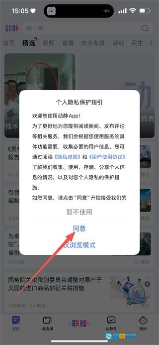 在个人隐私保护指引弹窗中,点击同意,进入首页。