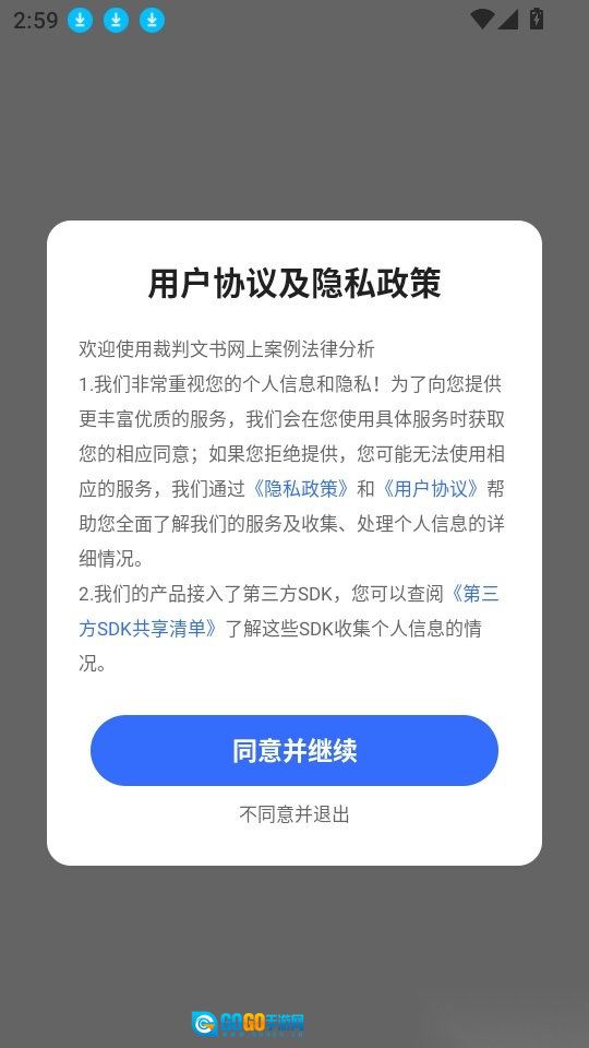 首先打开应用点击“同意并继续”按钮进入中。