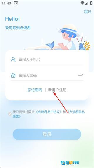 在登录界面,点击新用户注册,进入注册页面。