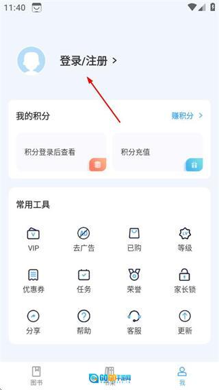 在点读君首页,点击右下角我选项,进入个人页面。