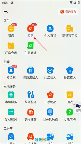 在发布页面,选择卖房分类,进入我要卖房页面。