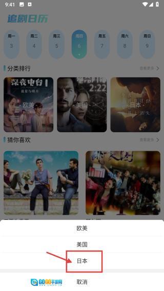 在分类选择列表里,选中日本分类,即可进入日本影片的列表页面。
