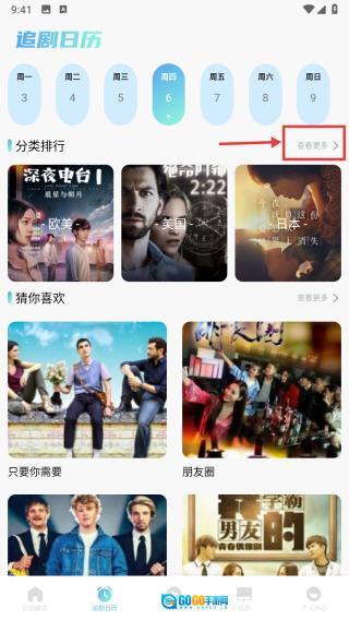 打开影视类首页,点击底部的追剧日历选项,即可进入追剧日历页面。