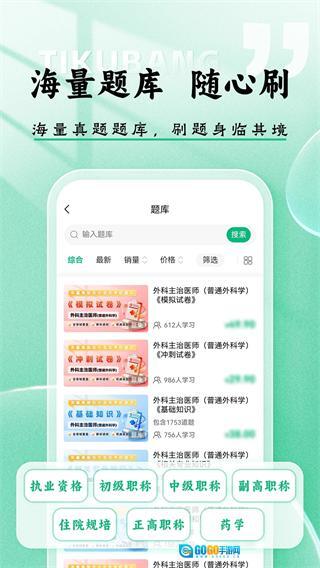 题库内容与医考大纲高度契合,全面覆盖各类执业资格考试及职称考试的核心考点,剔除无关题型,为考生提供极具针对性的刷题资源,助力考生提高备考效率。
