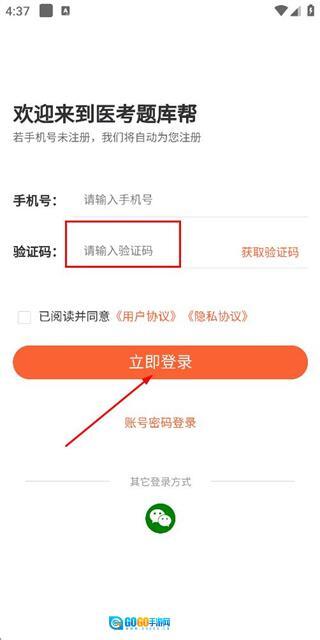 在登录页面输入手机号,勾选相关协议后,点击“获取验证码”按钮。