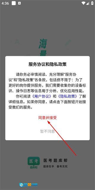 在使用协议与隐私政策弹窗中点击同意并接受,随后进入登录页面。