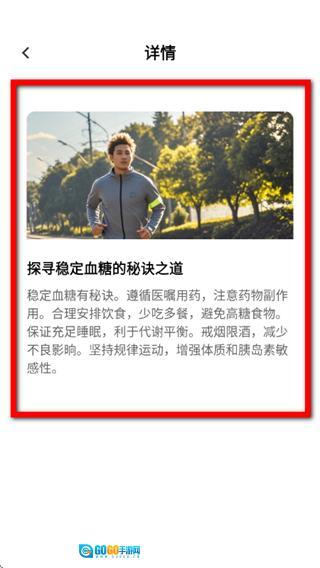 在详情页面,查看这篇文章的具体内容,学习与血糖管理相关的健康知识。