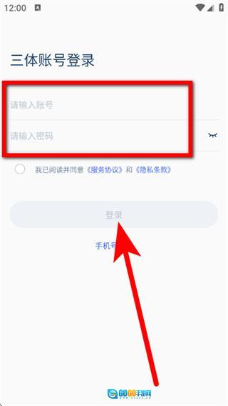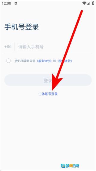 在手机号登录页面,点击三体账号登录选项,即可跳转至三体账号登录页面。