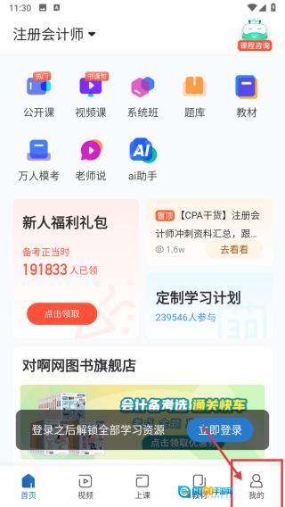 打开注册会计师学习应用,点击底部的“我的”选项,即可进入个人中心页面。