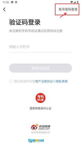 在登录选择界面,点击账号密码登录选项,即可切换到账号密码登录页面。