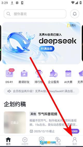 打开无界版图应用后,点击底部导航栏中的“我的”选项,即可进入个人中心页面。