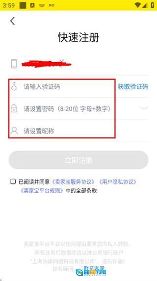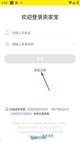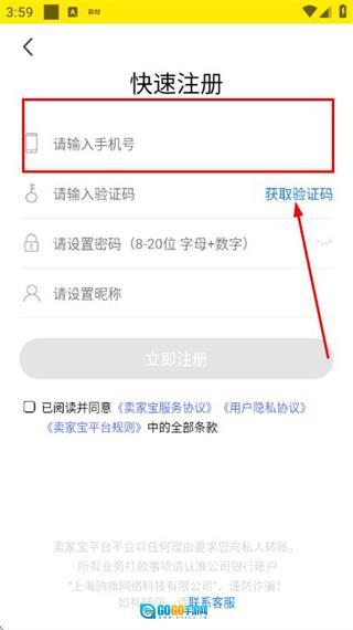 在登录页面点击快速注册,进入注册账号页面。