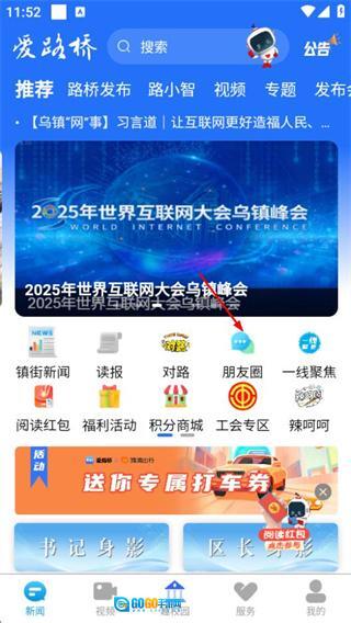 在爱路桥首页,点击朋友圈选项,进入朋友圈页面。