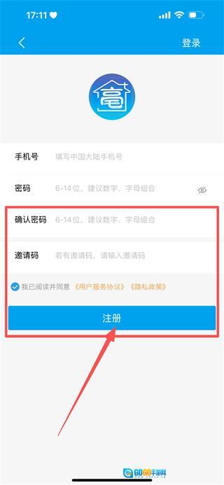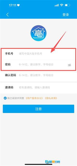 在注册页面,需要填写手机号和密码,密码建议采用数字与字母混合的组合形式。
