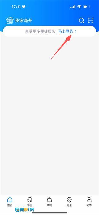 在“我家亳州”界面,点击“马上登录”按钮,即可进入登录注册页面。