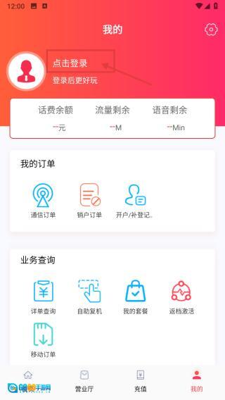 进入通信服务类别,点击底部的“我的”选项,即可进入个人中心页面。
