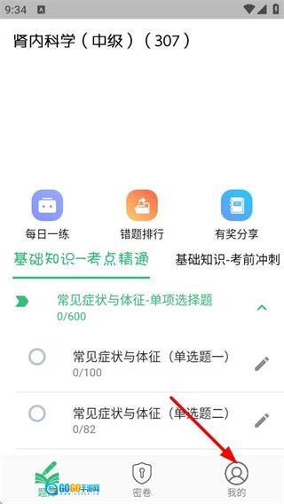 进入题库后,点击底部的“我的”选项,就能进入个人中心页面。