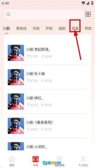 在听戏页面,点击目标戏曲分类标签,就能切换到该分类对应的戏曲列表。