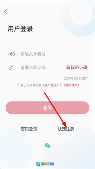 在登录页面,点击“快速注册”选项,就能进入用户注册页面。