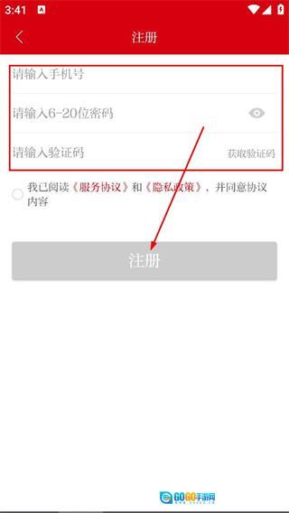 在填写手机号后设置密码,接着填写验证码,再点击注册按钮,即可完成账号注册流程。