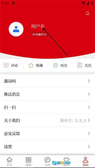 在个人中心页面,点击用户名区域,进入登录界面。
