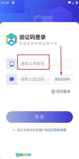 在登录页面输入手机号,勾选相关协议后,点击“获取验证码”按钮。