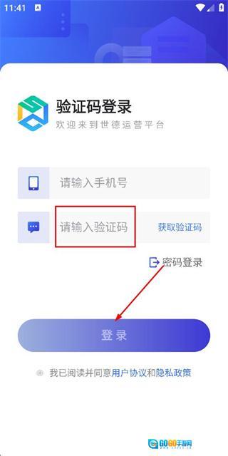 在验证码输入框内填入验证码,随后点击登录按钮,即可完成账号的登录流程。