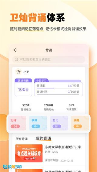 卫灿是专为公共卫生专业考研学子打造的智能学习平台,秉持学考一体与智慧学习的先进教学理念,着力构建从知识输入到成果检验的完整学习闭环。平台全面整合题库、课程、学习计划、笔记及背诵等核心功能,还针对公卫考研独特的背诵需求、择校决策、学习数据分析与成绩排名等环节,提供深度定制化的解决方案。