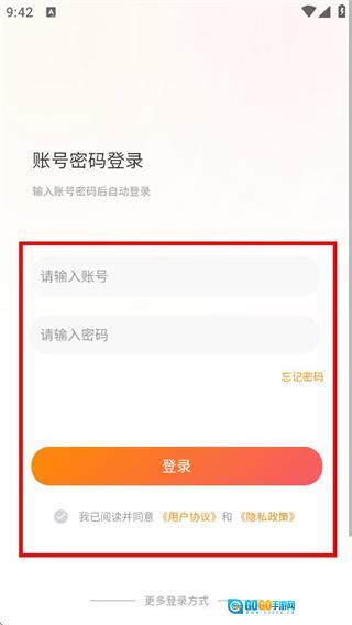 在登录页面,选择密码登录选项后,就能进入账号密码登录页面。