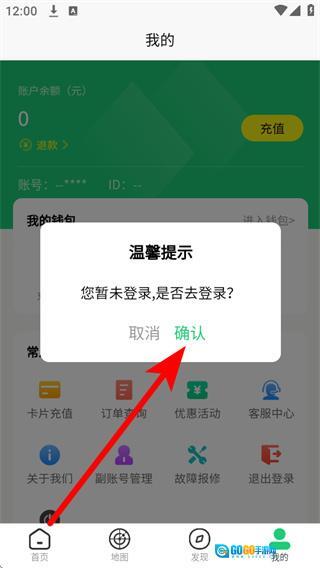 当个人中心页面弹出登录提示时,点击确认按钮,即可进入登录操作界面。